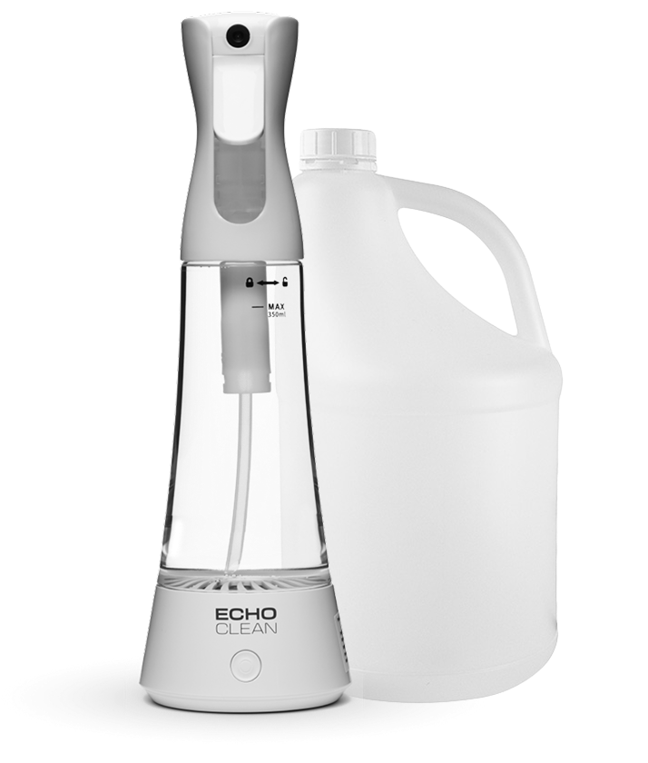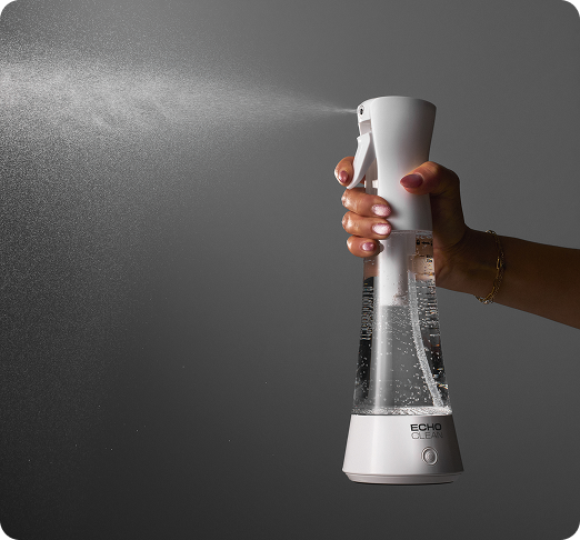 Hypochlorous acid is naturally produced by the body as part of its defense system. The Echo Clean™ uses similar technology to generate hypochlorous acid in a convenient, easy-to-use spray bottle, providing an effective cleaning solution for daily use.